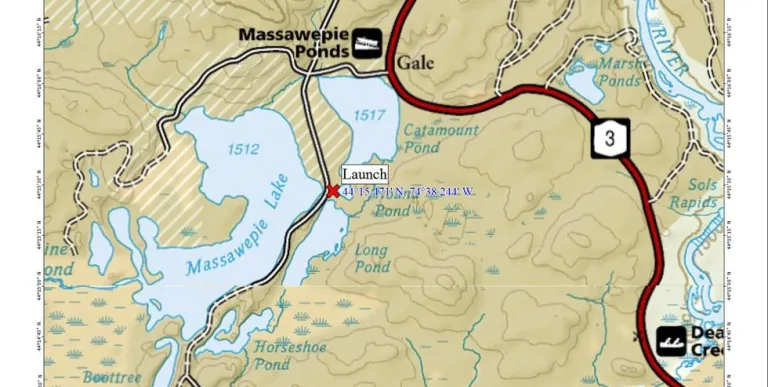 From the intersection of Route 30 and Route 3 in Tupper Lake follow Route 3 toward Piercefield. Drive through Piercefield into Gale and locate the Massawepie Boy Scout Camp on the left. Drive down this dirt road for 1.2 miles to a parking area on the left.
