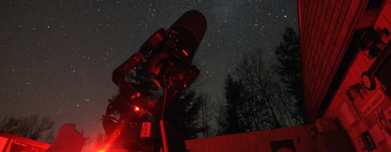 In addition to their stargazing schedule, The Adirondack Public Observatory also offers a variety of educational programs, guest lectures, and fun events throughout the year. During the winter months, one of the Observatory's popular events is "Skiing with the Stars," which is held in conjunction with the volunteer crew at the Tupper Lake Groomed Cross Country Ski Center. Marc, along with his friend John Gillis - who helps maintain the trails at the ski center, started hosting star parties on the Cranberry Pond Loop of the ski center. Skiers and snowshoers can venture out to Cranberry Pond where they've set up portable telescopes and a bonfire allowing you to observe the stars from the dark skies on the pond. Listings for the "Skiing with the Stars" dates and other Adirondack Public Observatory events can be found on our events calendar.