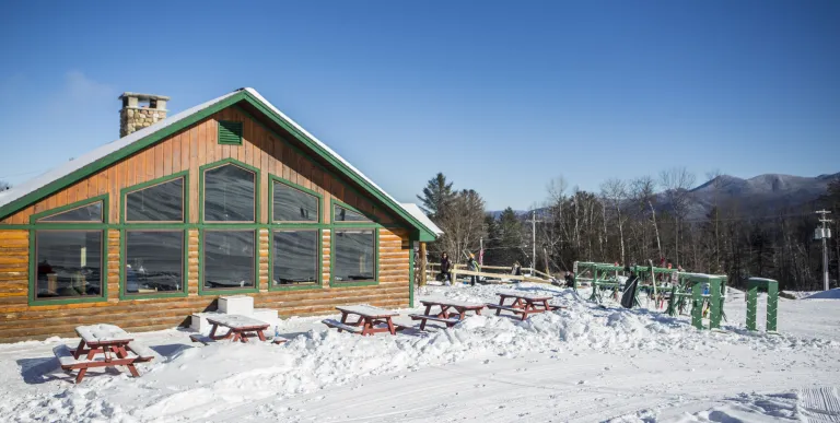 Enjoy hot beverages and food near the centrally located, native stone, fireplace. Broad windows let you watch the skiers across the whole slope while you refuel on food provided by ADKStreetEats.