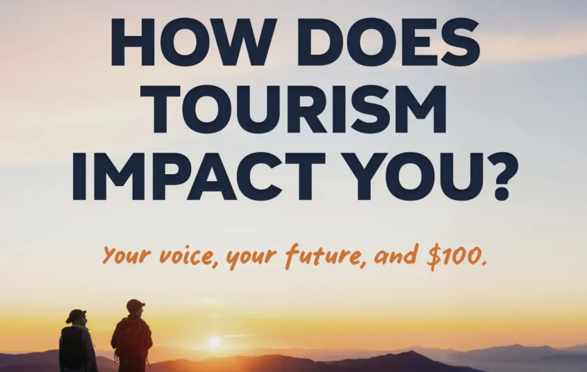 We're asking area residents and business owners to share their honest perspective in a short survey. Your feedback will guide how we approach tourism in the future and help ensure the visitor economy works for all of us. It only takes about ten minutes, but it can make a lasting impact. As a bonus, you will be entered for a chance to win $100 when you complete the survey!