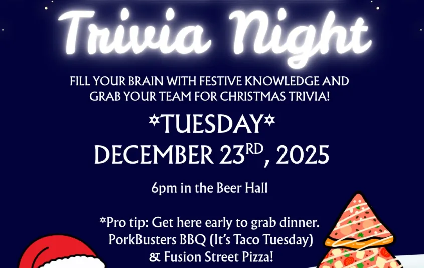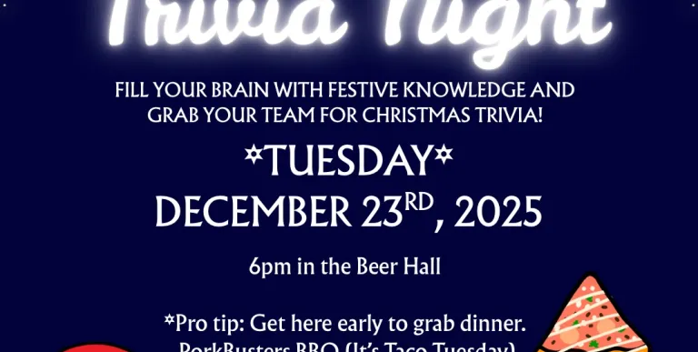 Join us at Raquette River Brewing for a festive twist on trivia—holiday facts, merry puzzles, and plenty of cheer. Bring your brightest (and most festive) friends and see who really knows their Christmas stuff.