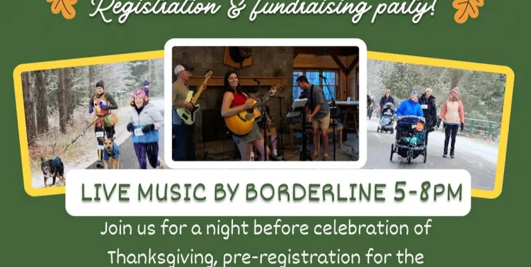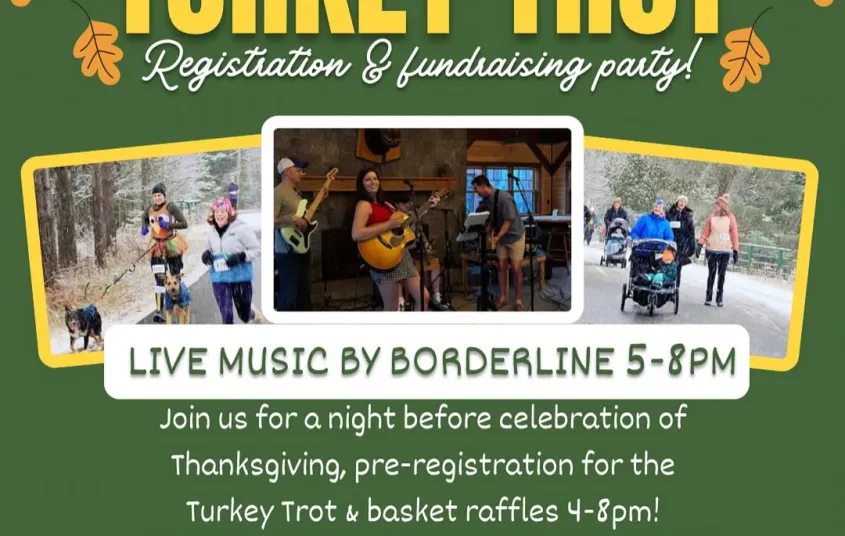 Join us on the eve of Thanksgiving to celebrate the Erin Farkas Dewyea Turkey Trot! Pre-registration and raffle baskets start at 4:00 PM, followed by live music from Borderline from 5:00 to 8:00 PM.