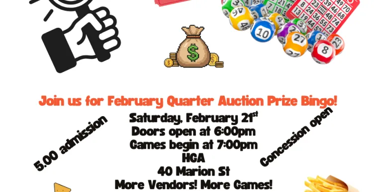 Join us for a night of fun! Only 5.00 admission gets you an Auction Paddle, Bingo Card & Prize Draw ticket. Bring a friend that has never been and you each will recieve a FREE prize draw ticket! Fun for the whole family! Kids are welcome with an adult!