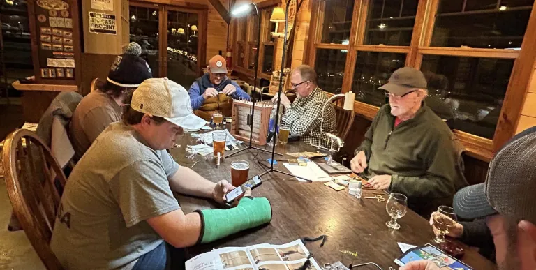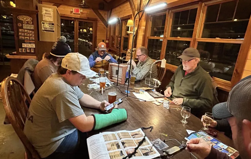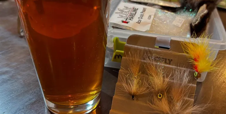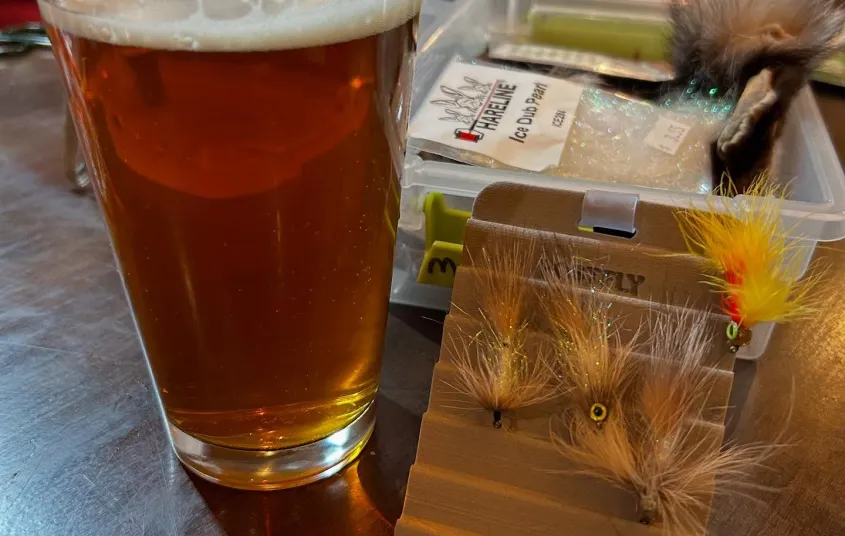 Grab your vice, supplies, and a drink—it's the perfect setting to prep your flies and unwind with a great beer.