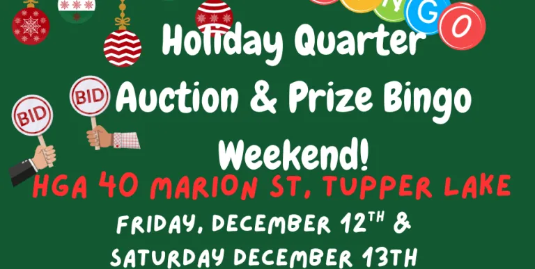 2 Nights of Quarter Auction and Bingo action! Join us Dec 12th, Dec 13th or both days!! Fun for the whole family! Bring the kids, bring the friends, or just leave everyone home and come by yourself for a little you time! Plenty of chances to win great prizes from the vendors each night! Doors open at 6pm each night and the games begin at 7.