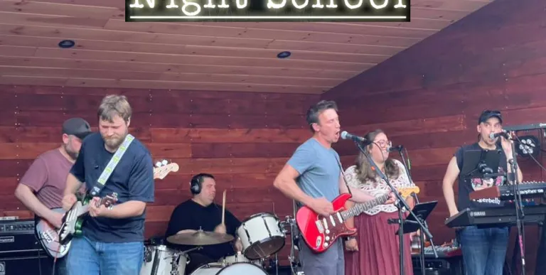 This high-energy local band features Ben McClelland, Andrew McClelland, Jay Martin, Micah Tyo, Ryan Gillis, Lauren Connell, and Corinne Mather. Get ready to hit the dance floor as Night School delivers an unforgettable set of crowd favorites from the '70s to today — including hits by David Bowie, Harry Styles, Talking Heads, Cake, and The B-52s.