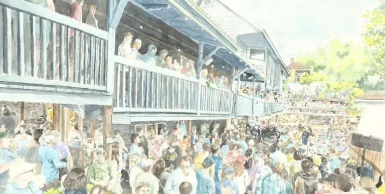 A graduate of the Rochester Institute of Technology, Michael honed his artistic skills through his study of graphic design, but it wasn’t until 2020—amidst the isolation of the pandemic—that he turned to watercolor as a form of solace and expression. His work offers a personal and heartfelt glimpse into his experiences, from the misty canals of Amsterdam to the vibrant cityscapes of Buenos Aires and the serene roads of Kyoto. However, it is the people and culture of the Adirondacks that remain his truest inspiration.