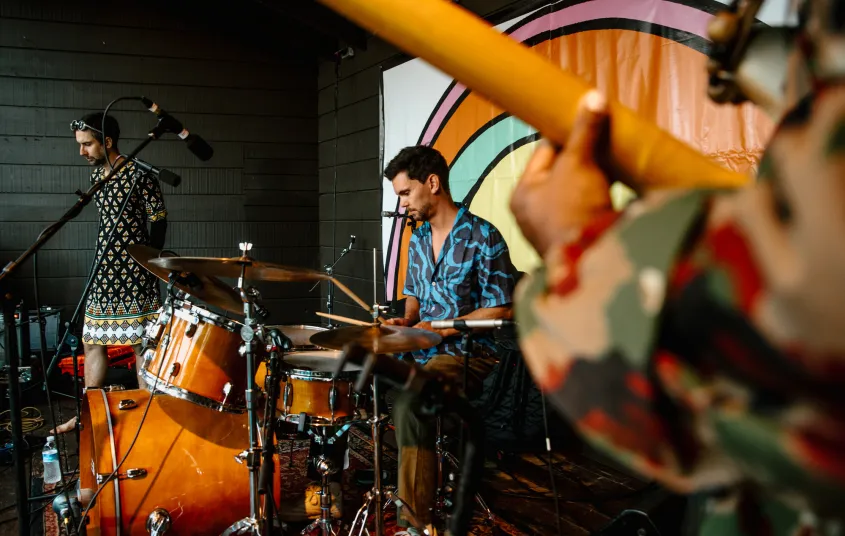 • Combo Chimbita – Formed in 2016 by a group of musicians from the Colombian diaspora in New York, Combo Chimbita has become known for their unique blend of Afro-Colombian rhythms and experimental sounds. What began as casual jam sessions evolved into a full-fledged musical journey that has captivated audiences worldwide. Their electrifying live performances feature razor-sharp guitar, cosmic synths, intricate rhythms, showcasing a sound that is both psychedelic and powerful.