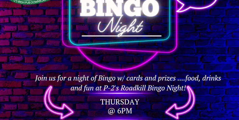 Roadkill Bingo Night at P-2’s Irish Pub!