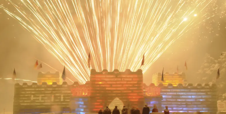 Ice Palace: The Ice Palace is built for the duration of Winter Carnival, weather permitting. It will be illuminated nightly from the lighting ceremony and fireworks until closing.