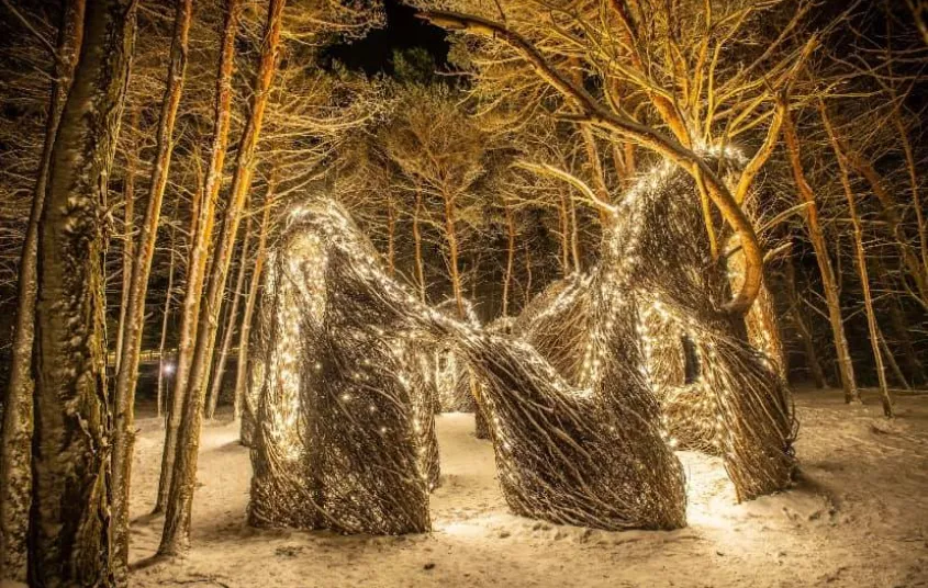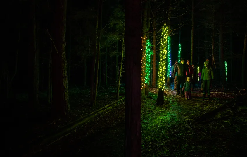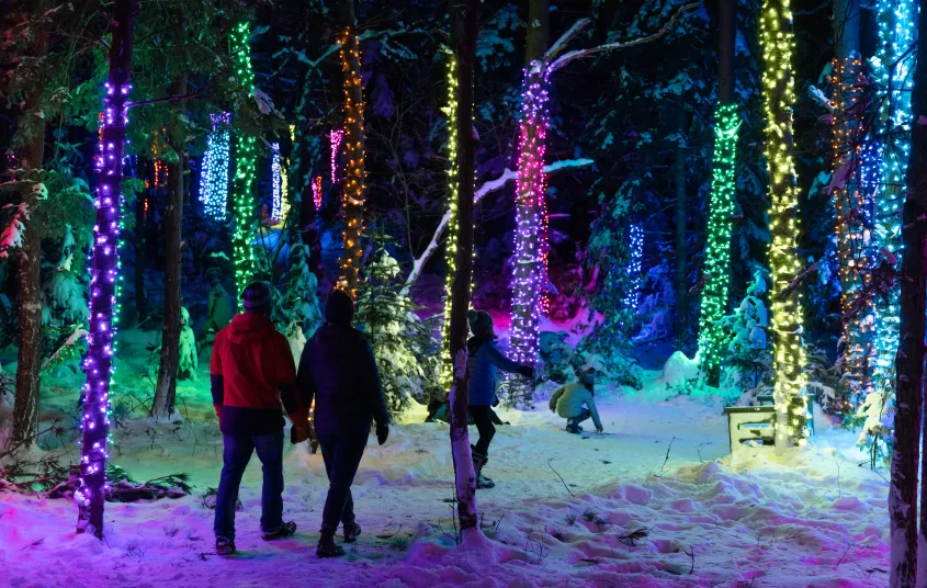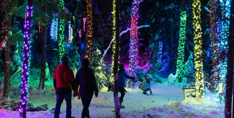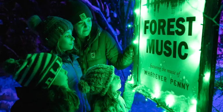 - Forest Music: Over 130 trees are wrapped in colorful lights that illuminate the forest and will transport you to a winter wonderland. A new musical composition from Whatever Penny creates a magical, three-dimensional, dreamy winter soundscape