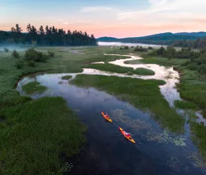 Escape to the serene beauty of the Adirondacks and immerse yourself in nature as you paddle the tranquil waters of Lake Flower in a kayak, canoe, or SUP