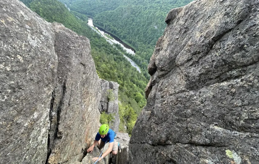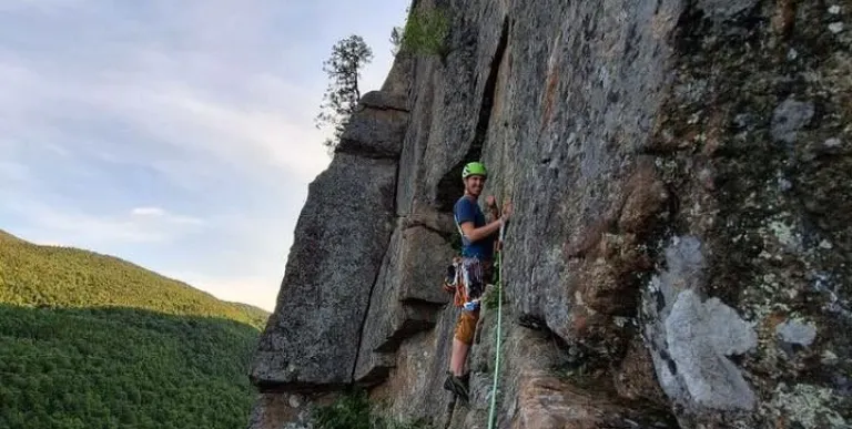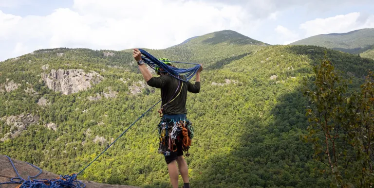 Climbing rocks is about more than just getting up high above the trees. It’s about tenacity, problem-solving, and trust. The Adirondacks offer incredible roadside crags with routes perfect for beginners and climbers ready to push themselves alike. Not to mention the stunning multi-pitch routes, backcountry crags, and slide climbs for folks seeking a full-on day of sending. [Learn more →]