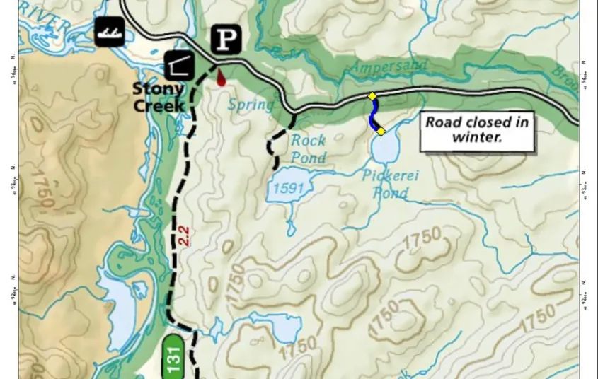 From the intersection of Routes 3 and 86 in Saranac Lake follow Route 3 toward Tupper Lake. Continue on Route 3 to Coreys Road on the left. Follow Coreys Road for just around 3.75 miles to the trailhead on the right.