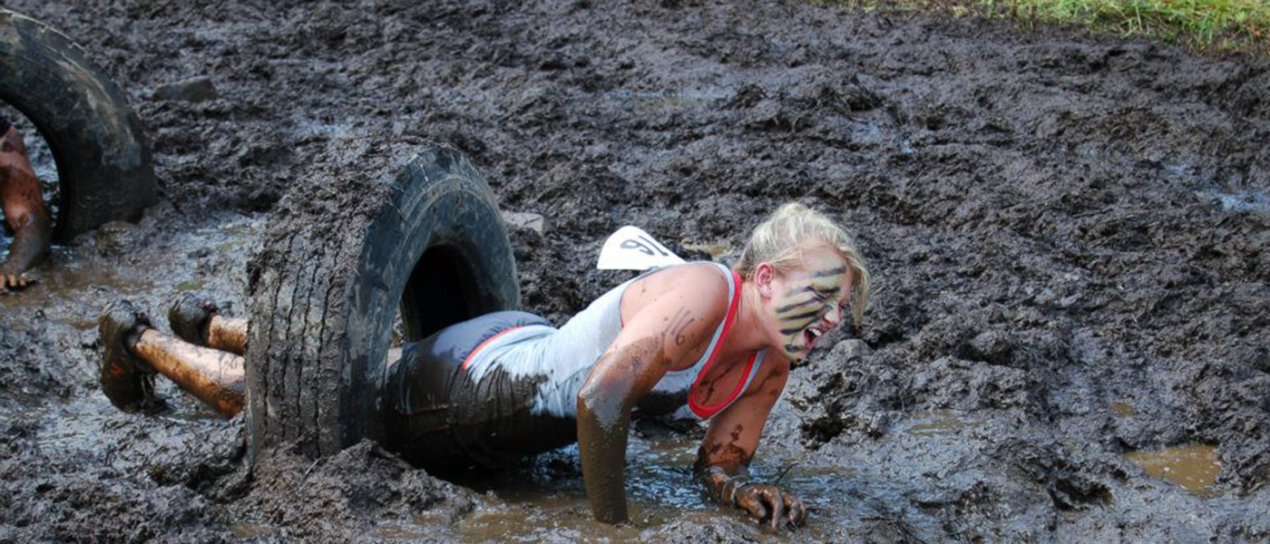Danielle: “For girls, I'd recommend 3/4 length running tights, tank top or t-shirt in some sort of performance fabric and a pair of trail shoes you won't be sad to throw away at the end. Don't wear cotton - you'll be swimming and covered in mud, so that'll just weigh you down, and if it rains, you'll be cold. I like the 3/4 length tights because they cover your knees, whereas shorts won't. It's not uncommon to be crawling over rocks in the mud, so the bit of extra fabric is good for protection. I also wore a Camelback because I like to drink water throughout and I was glad I did.”