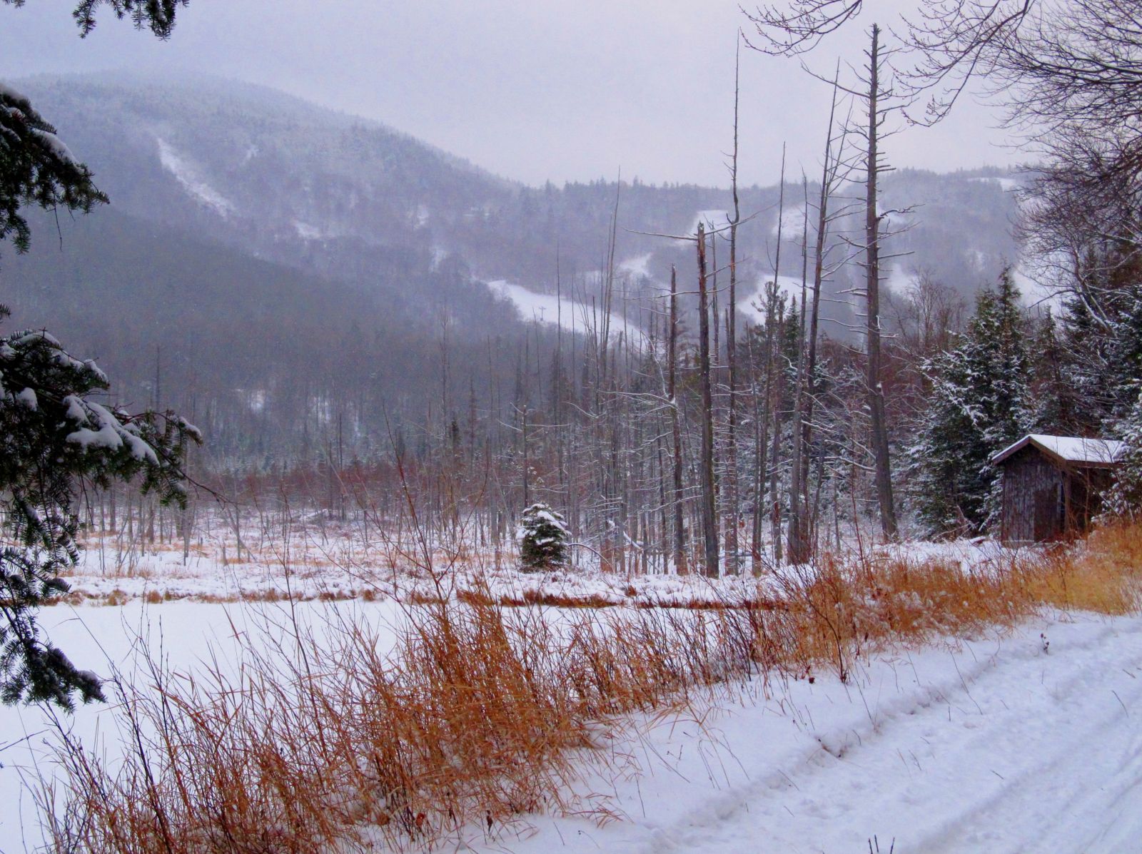 Unfortunately, Mother Nature was not very generous to us skiers, boarders, sledders and snowshoers in December. Finally, on Jan. 1, there seemed to be enough snow to go cross-country skiing. However, I was indecisive. I wasn’t sure how the coverage would be until I got on the ski trail, so I considered my other option — skating at the Tupper Lake Civic Center. I wanted to exercise for at least an hour, and not knowing how well my ankles would endure skating for an hour, skiing was my choice. Once dressed in layers I gathered my skis, poles, and waist pack, which contained my camera and water bottle, and headed to the Tupper Lake Golf Club to check out their groomed cross-country ski trails.