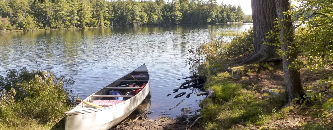We started out in the morning driving toward Horseshoe Lake. After turning down Route 421 and passing the scenic Bog River Falls, we continued on until the road takes a left turn. About four miles down the road, you will start to see various parking areas. I decided to park at the second parking lot, which made my bike trip a bit longer. You can continue driving and park farther in if you don’t want to bike as far. Taking my bike off the car and getting ready to go, I noticed how peaceful Horseshoe Lake was in the morning. The lake was like glass, I paused for a moment and watched a couple getting ready to head out for a paddle.