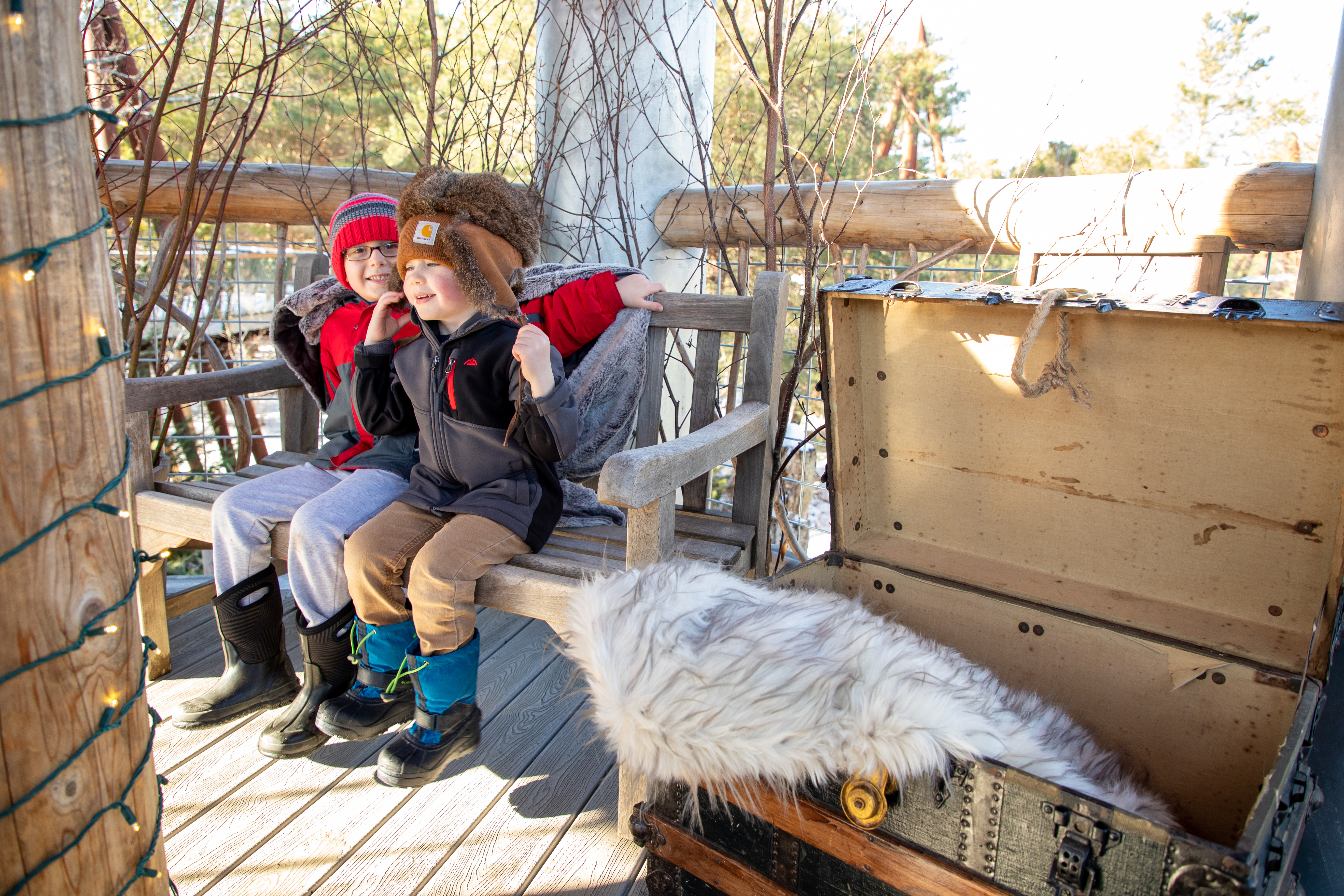 The Wild Walk turns into a winter wonderland once the snow hits, blanketing everything in a beautiful white covering. Walk along the snow covered tree tops and take in a different view of the mountains surrounding us. You may have seen the views in the summer or fall, but come winter, they warrant being seen again! On The Wild Walk there are snowball throwing games, dress up trunks with places to take a picture, and tons of opportunities to see winter wildlife, as well as other games and activities.