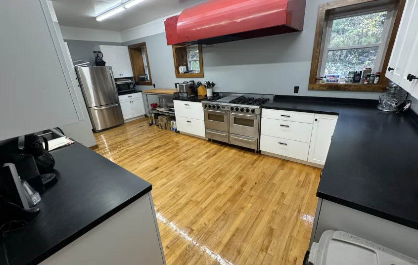 This space includes two bathrooms, a full kitchen and event space with a bar. We offer table and chairs and rent a variety of linens and chair covers. In addition to a stocked kitchen, we have chafing dishes and commercial coffee pots. We would love to help you host in a clean and cozy space.