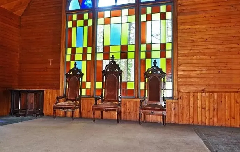 It is perfect for all kinds of events and gatherings, including wedding ceremonies and receptions. This historic, rustic, and non-denominational chapel is loaded with character and charm, and features new flooring, a new roof, and retains most of its original stained-glass windows. Make this chapel the home of your special event! It includes 4 acres of space, room for up to 70 people, is perfect for outdoor celebrations, space for parking, and more. Also add a tent and tables. It can be used for space both religious and non-religious events.